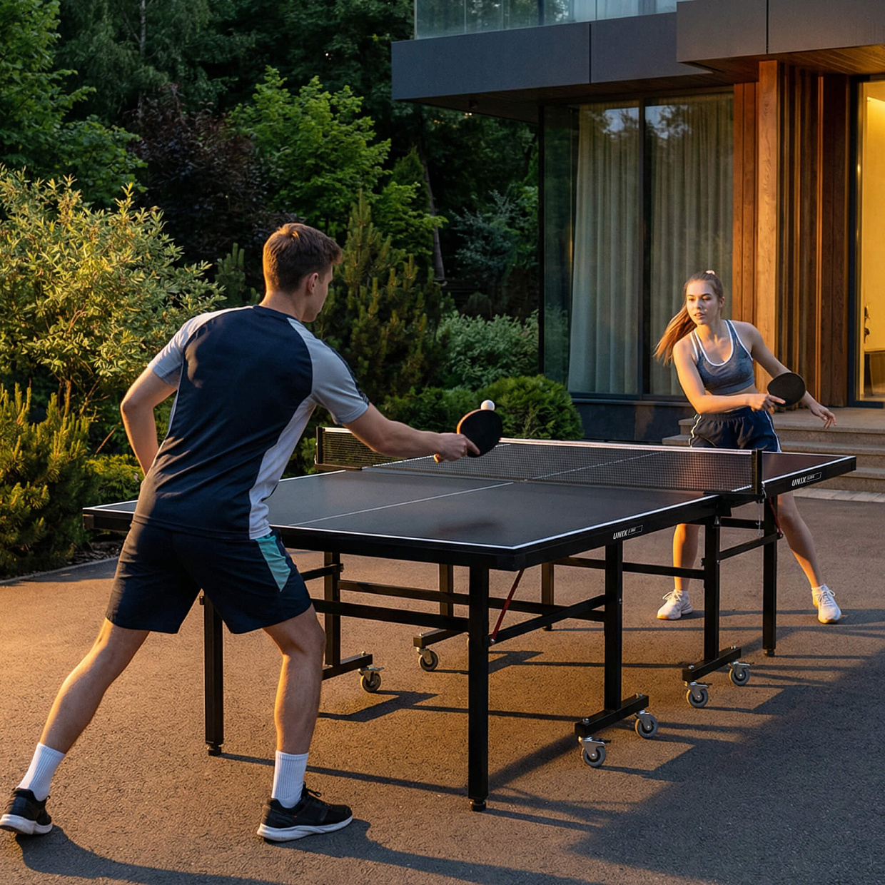 Столешница всепогодного стола UNIX Line изготовлена из SMС - панели с антибликовым покрытием и выдерживает многочисленные нагрузки, мм обладает хорошей устойчивостью к ударам, воздействию окружающей среды, влаге и температурным перепадам. Она не является горючим материалом, и за счет высокой плотности и толщины столешницы (14 мм) обеспечивает великолепный отскок мяча во время игры.