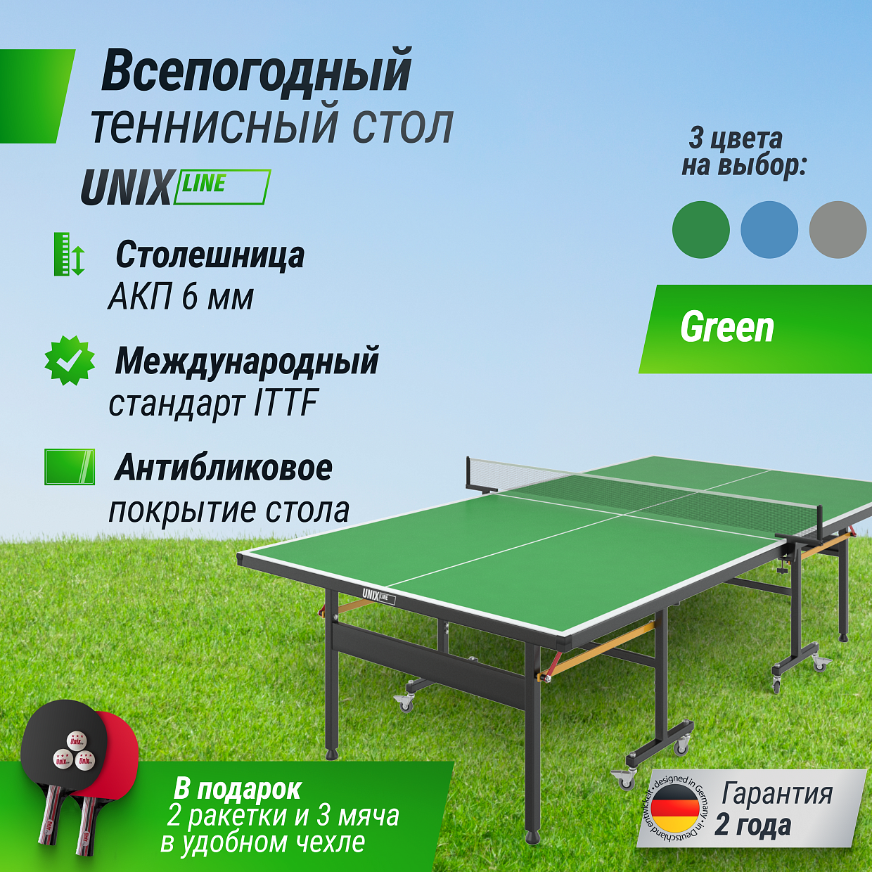 Всепогодный теннисный стол UNIX Line outdoor 6mm (Green) |