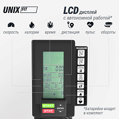 LCD-дисплей с автономной системой питания (батарейки входят в комплект) отображает полную статистику каждой тренировки: скорость, пройденную дистанцию, затраченное время, сожжённые калории, уровень пульса, число оборотов и мощность (Watt). Все показатели измеряются точно и объективно, позволяя отслеживать прогресс и достигать поставленных целей быстрее.