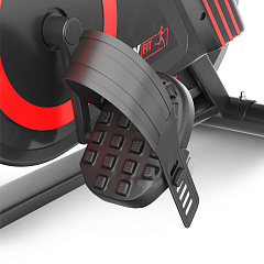 Плавность хода по всей траектории движения педалей обеспечивается сбалансированным маховиком с инерционным весом 8 кг. Благодаря трем подшипникам уменьшается трение между движущимися частями велотренажера и достигается более плавное вращение педалей и других механизмов, тем самым продлевая срок службы фитнес-тренажера. Противоскользящие, регулируемые педали обладают прочными ремешками, позволяя надёжно зафиксировать стопы и обеспечивая оптимальное положение во время занятий. За счет рифленой поверхности, сцепка с ногами очень крепкая, что уменьшает риск травм.