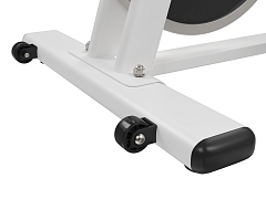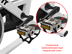 Эргономичное гелевое сиденье и руль имеют возможность регулироваться под пользователя: сиденье по горизонтали и вертикали, а руль по вертикали. Антискользящее покрытие на педалях, а также наличие на них ремешков-фиксаторов способствуют удобному расположению ноги во время тренировки. У спин-байка имеются специальные транспортировочные ролики, так что его перемещение по квартире не вызовет затруднений.