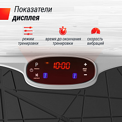 оставшееся время/текущий режим (попеременно), скорость вибрации в текущей программе или пользовательской тренировке |