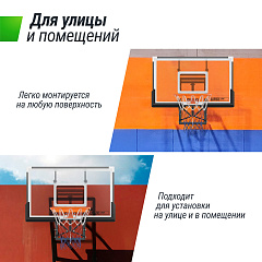 Щит из полимерных материалов отлично выдерживает сильные удары мячом, не теряя прочность и устойчивость. Крепежная система позволяет безопасно и надежно зафиксировать конструкцию. Баскетбольный щит подходит для универсальной эксплуатации детскими и взрослыми командами. Щит обладает высокой способностью к отскоку и обеспечивает точное моделирование игровых ситуаций. Конструкция выполнена из высококачественных материалов и устойчива к погодным условиям. Кольцо оборудовано пружинным механизмом для амортизации и смягчения ударов.