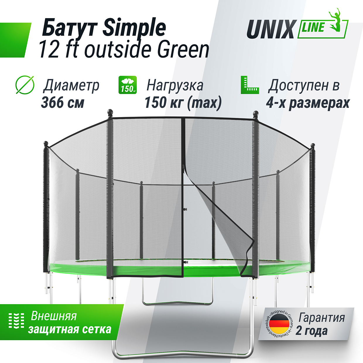 | Батут UNIX Line Simple 12 ft Green (outside) |