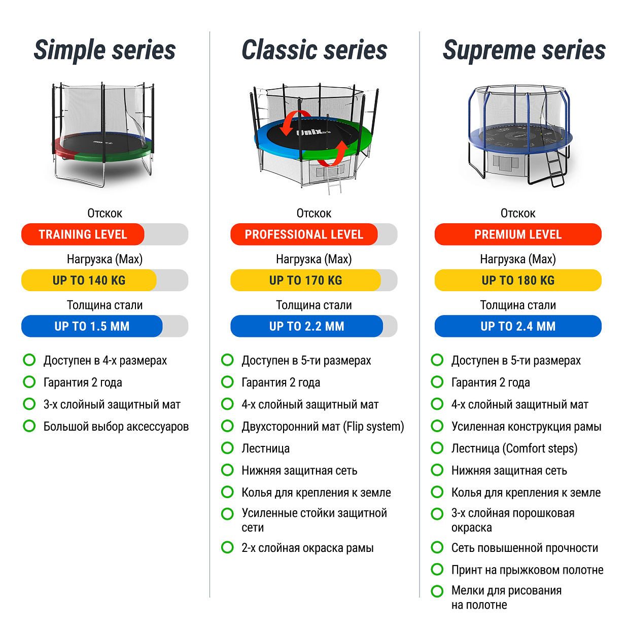 | Диаметр батута | 3.66 м (12 ft) |