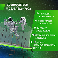 Прыжки на батуте — это отличная аэробная нагрузка: улучшения общей физической формы, заряд положительными эмоциями, улучшение работы кардио системы, развитие чувства равновесия и координации, подойдет для пользователей любого возраста. Занятия на свежем воздухе укрепляют иммунитет, повышают выносливость. Главным приоритетом компания ставит безопасность детей, поэтому наши батуты изготовлены в соответствии со всеми требованиями из высококачественных материалов. Батут способствует развитию координации движений, баланса и гибкости, что положительно влияет на здоровье и физическую форму детей. Гарантия на батуты составляет 2 года.