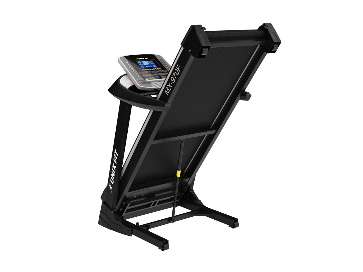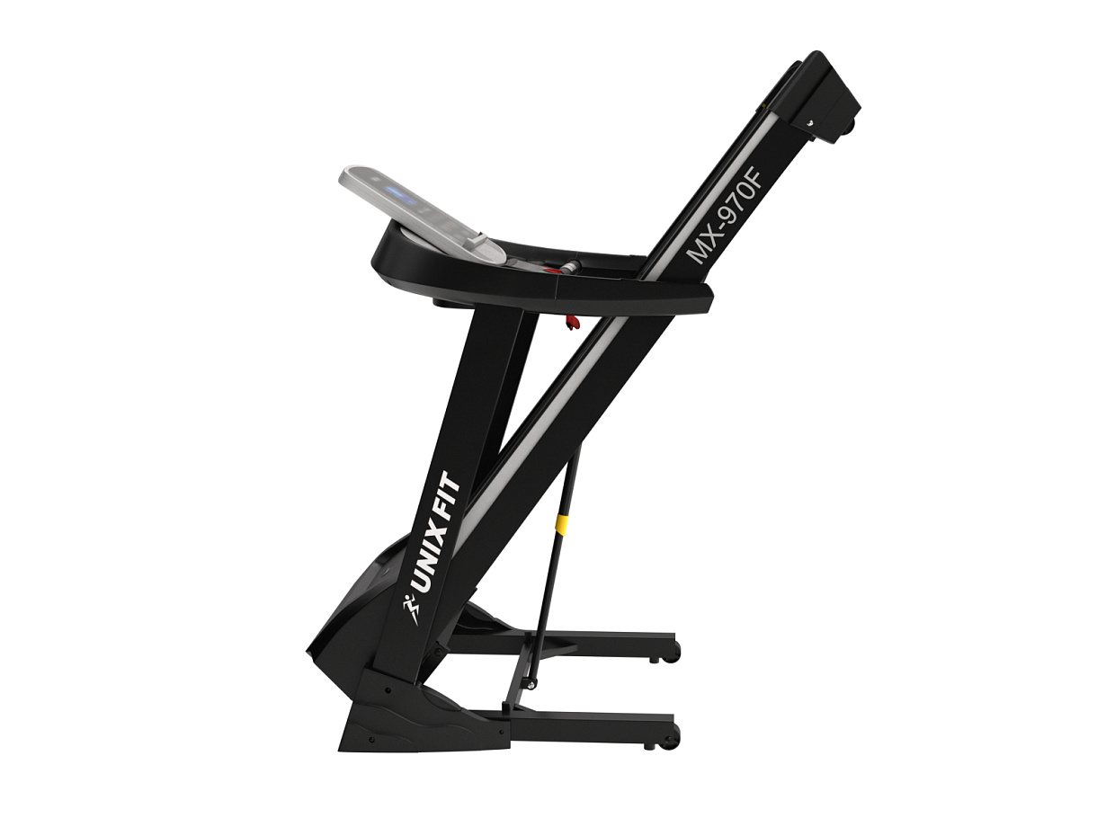Максимальная скорость беговой дорожки UNIX Fit MX-970F составляет 22 км/ч, максимальный угол наклона бегового полотна 20 %. Беговая дорожка оборудована системой вентиляции Aircool. Вентилятор, встроенный в панель управления, создает необходимые для комфортной тренировки колебания воздуха.