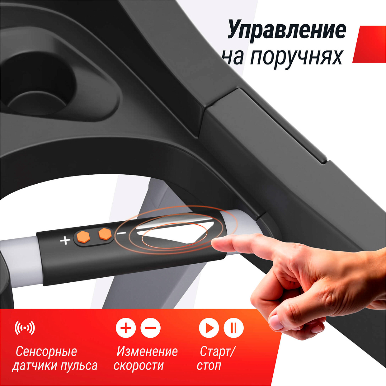 12 предустановленных и 3 встроенных программы тренировок помогут разнообразить занятия и поддерживать интерес к тренировкам. Выбирайте подходящий режим — от легкой разминки до интенсивного тренинга! Поручни обеспечивают дополнительную поддержку во время бега или ходьбы, что делает тренировки более безопасной.