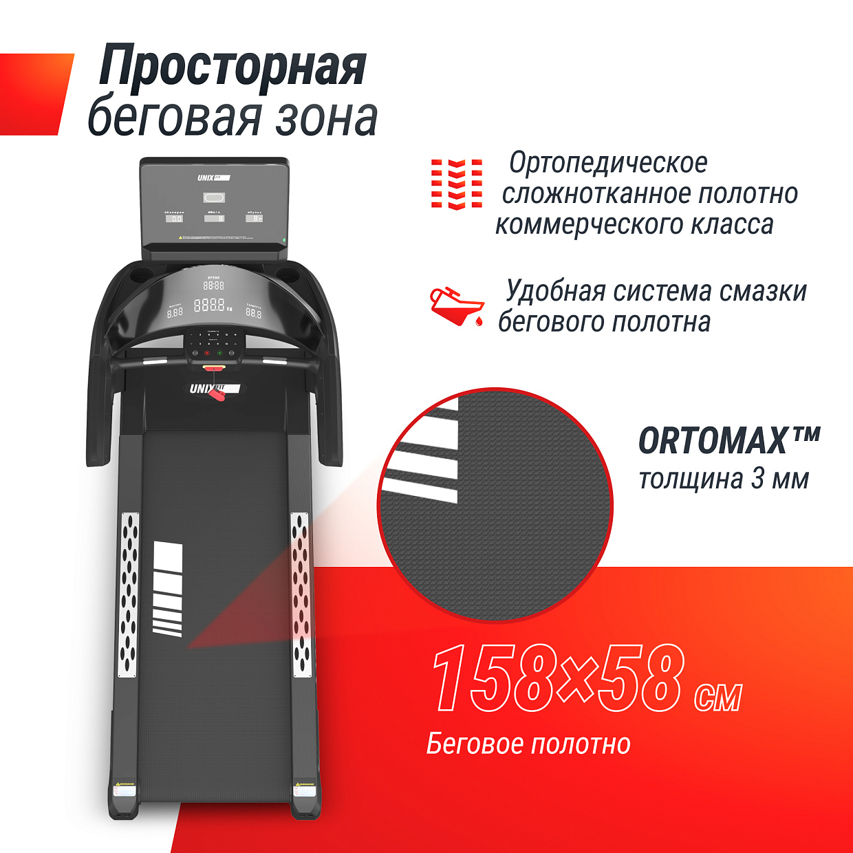 | Беговое полотно | ортопедическое антискользящее беговое полотно ORTOMAX™ (толщина 3 мм) коммерческого класса |
