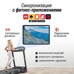 Также, имеется возможность синхронизации беговой дорожки с мобильным устройством при помощи приложений Фитшоу / FitShow (подключение через Bluetooth) с возможностью управления беговой дорожкой и сохранения тренировок.