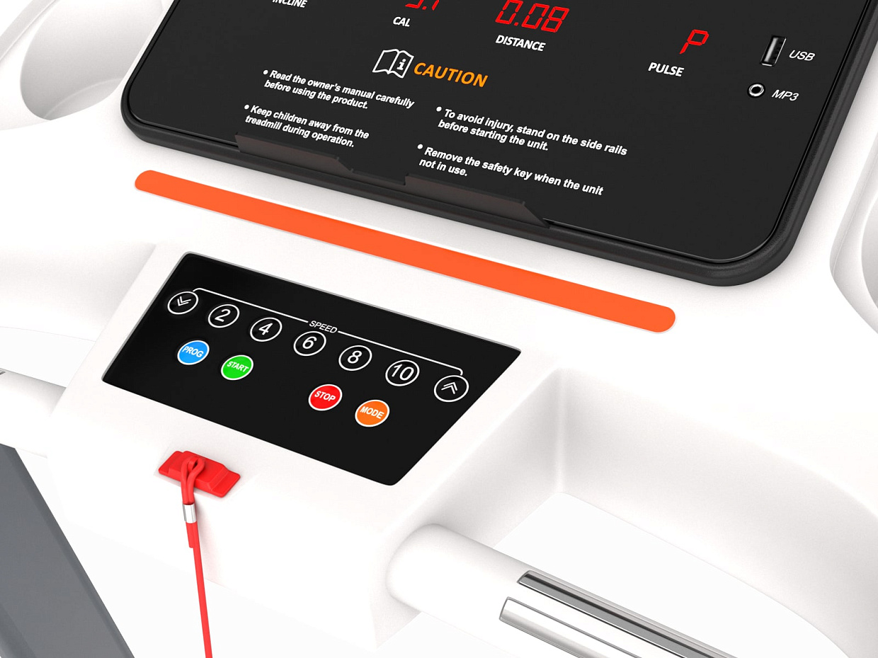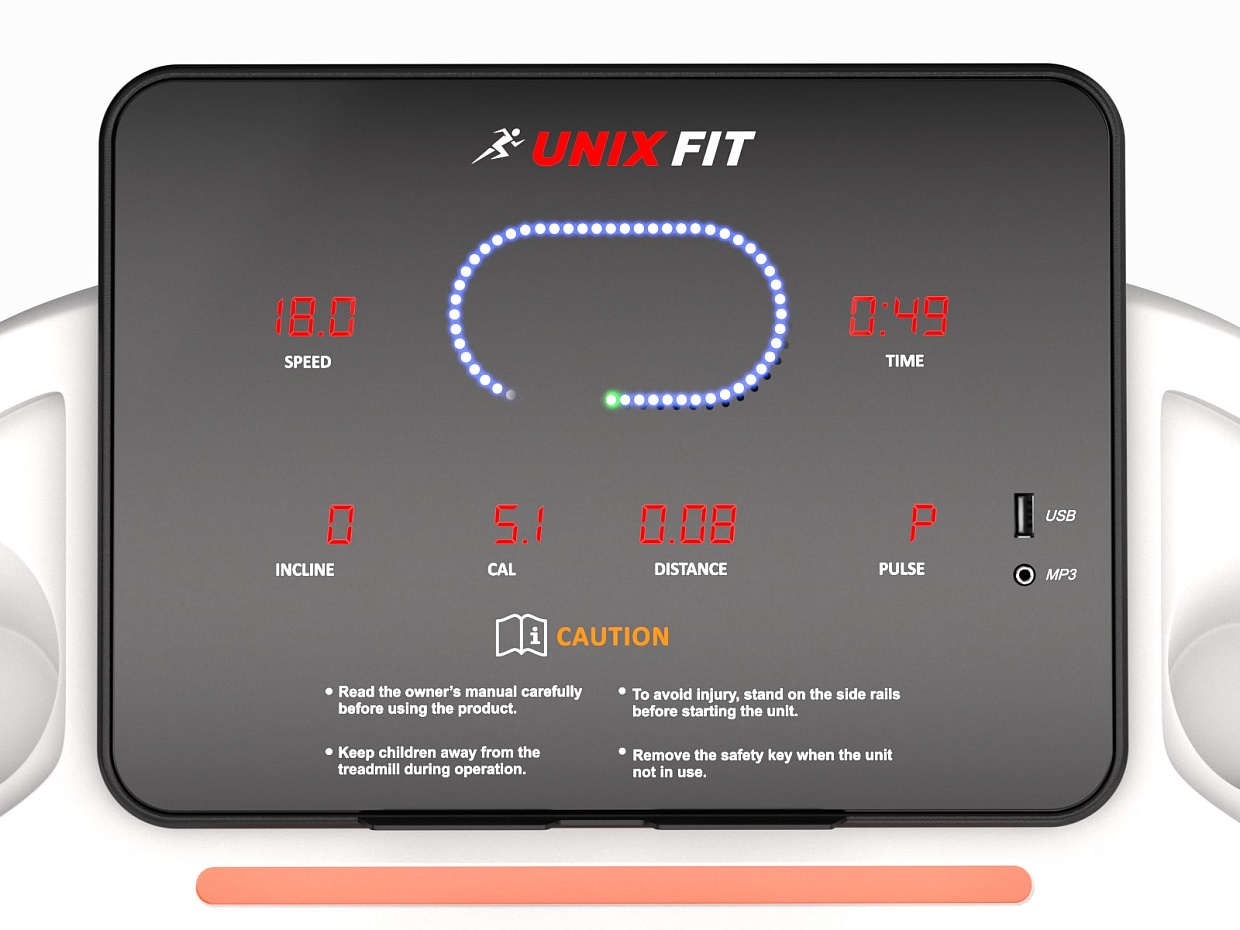Все необходимые для тренировки показатели отображают 6 (шесть) LED дисплеев. Двухслойное беговое полотно толщиной 1,6 мм. Длина зоны для бега составляет 122 см, а ширина - 42,5 см. Максимальная скорость бега на данной модели составляет 14 км/ч. Так же, модель оборудована двумя динамиками суммарной мощностью 4 кВ в возможностью подключения внешних устройств с помощью входов USB и AUX.