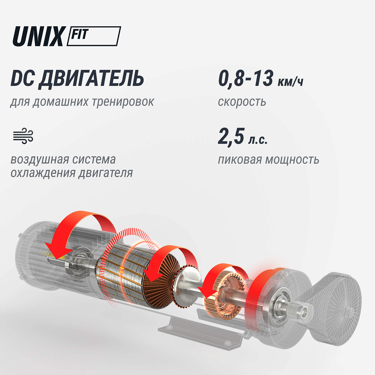 Мощный двигатель с пиковой нагрузкой 2.5 л.с., оснащённый системой воздушного охлаждения и функцией подавления шума SmartTex, гарантирует плавный ход и минимизирует посторонние звуки, позволяя заниматься спортом практически незаметно для окружающих. Максимальная скорость достигает 13 км/ч, что позволит каждому выбрать оптимальный темп для своего уровня подготовки.