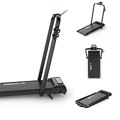 Беговая дорожка электрическая складная UNIX Fit R-230 PLUS — идеальный выбор для тех, кто стремится поддерживать себя в отличной форме прямо у себя дома! Этот ультратонкий кардиотренажер сочетает в себе компактность, инновационные технологии и превосходные характеристики, позволяющие вам заниматься спортом комфортно и эффективно каждый день. Благодаря своей уникальной конструкции и лёгкости складного механизма, эта беговая дорожка без поручней легко адаптируется к любым условиям вашей квартиры или загородного дома. Компактность кардио тренажера R-230 PLUS позволяет установить его даже в небольших помещениях, сохраняя свободное пространство. Два удобных транспортировочных ролика облегчают перемещение тренажера внутри помещения, делая тренировки дома комфортными и удобными для всей семьи.