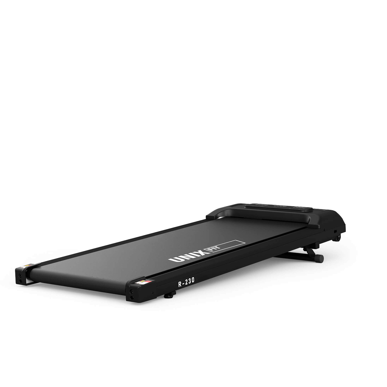 Беговая дорожка электрическая без поручней UNIX Fit R-230 — идеальный выбор для тех, кто стремится поддерживать себя в отличной форме прямо у себя дома! Этот ультратонкий кардиотренажер сочетает в себе компактность, инновационные технологии и превосходные характеристики, позволяющие вам заниматься спортом комфортно и эффективно каждый день. Беговая дорожка без поручней легко адаптируется к любым условиям вашей квартиры или загородного дома. Компактность кардио тренажера R-230 позволяет установить его даже в небольших помещениях, сохраняя свободное пространство. Два удобных транспортировочных ролика облегчают перемещение тренажера внутри помещения, делая тренировки дома комфортными и удобными для всей семьи.