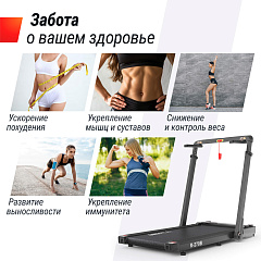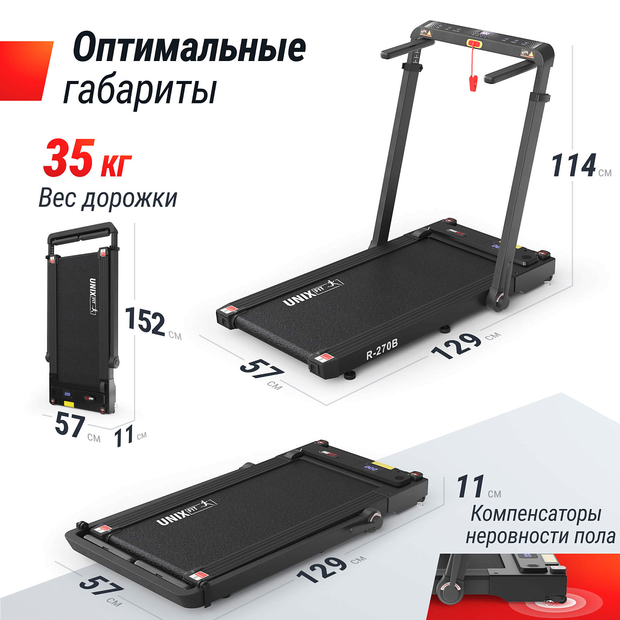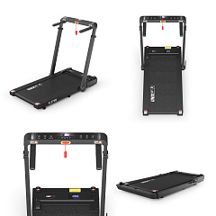 | Особенности | Пульт ДУ - часы, индивидуальная подстройка по высоте стойки от 85 до 97 см (4 уровня), складная подставка под гаджеты, съёмный столик для ноутбука до 20″ до 5 кг, ключ безопасности, защита от перегрузки, встроенный динамик, кнопка быстрого выбора скорости, кнопки: старт/стоп, выбор программ |