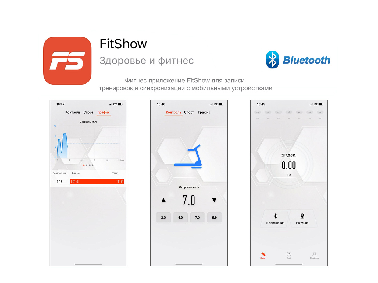 В комплектации присутствует опция управления беговой дорожкой и сохранения тренировок через приложения FitShow, Kinomap, ZWIFT, SPAX, FITLOG (подключение через Bluetooth).