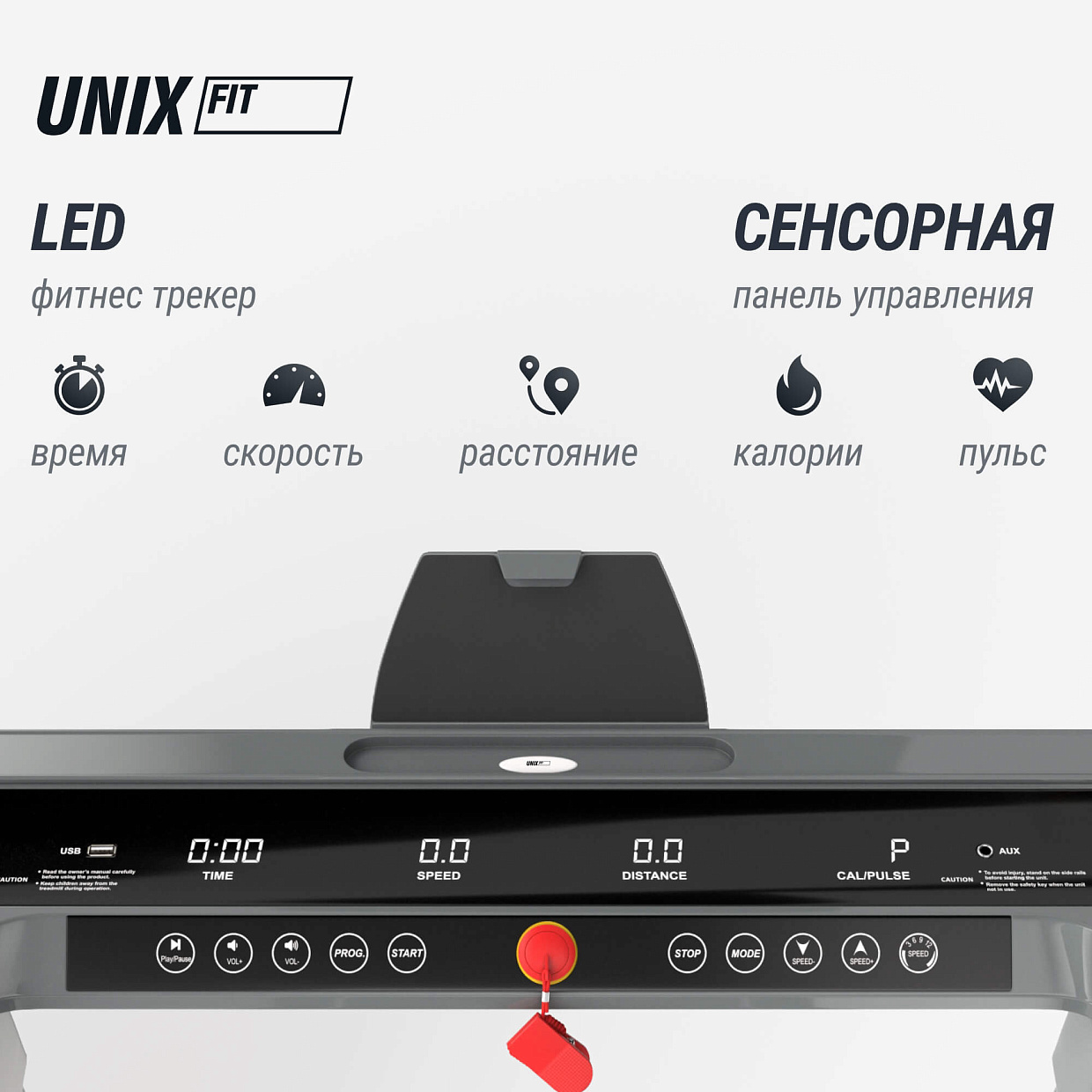 Уникальная система складывания SlimFold превращает UNIX Fit R-320X в компактную беговую дорожку, которую легко убрать под диван или поставить к стене - толщина рамы всего 14 см. Это особенно важно для тех, кто ценит пространство и ищет спортивный тренажер, не занимающий много места. Сенсорная консоль с LED-подсветкой отображает все ключевые параметры: время, скорость, дистанцию, калории и пульс, который измеряется с помощью сенсорных датчиков на поручнях. Для удобства предусмотрена подставка под планшет, а мультимедийная система с двумя мощными динамиками и поддержкой USB и AUX позволяет наслаждаться любимой музыкой во время занятий.