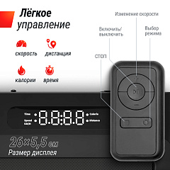 LED дисплей поможет с легкостью контролировать тренировки, ведь на экране поочередно будет отображаться время, скорость, дистанция и калории. Удобный пульт дистанционного управления оснащен возможностью остановки, запуска, увеличения и уменьшения скорости тренажера, что делает управление дорожкой простым, но в то же время эффективным.