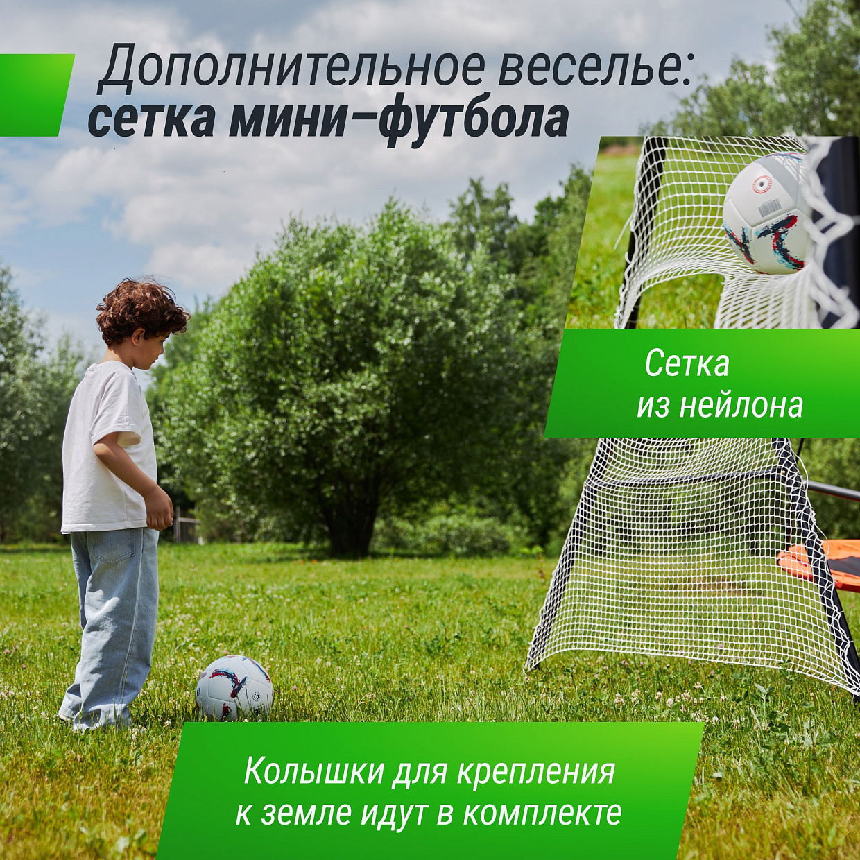 | Комплектация | качель-гнездо, сетка футбольная, колышки, инструкция |