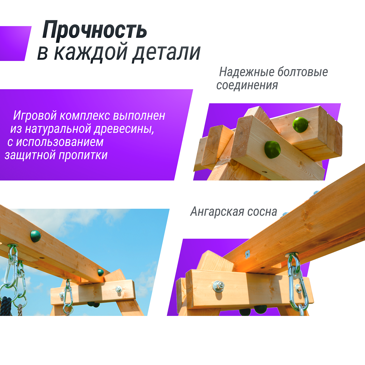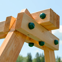 Все элементы городка обработаны пропиткой на водной основе. Древесина надежно защищена от воздействия окружающей среды.