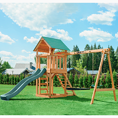 | Комплектация | Горка, скалодром, песочница, качели обычные, качели - гнездо, штурвал, подзорная труба, верёвочная лестница, крепежные элементы, инструкция по сборке изделия |