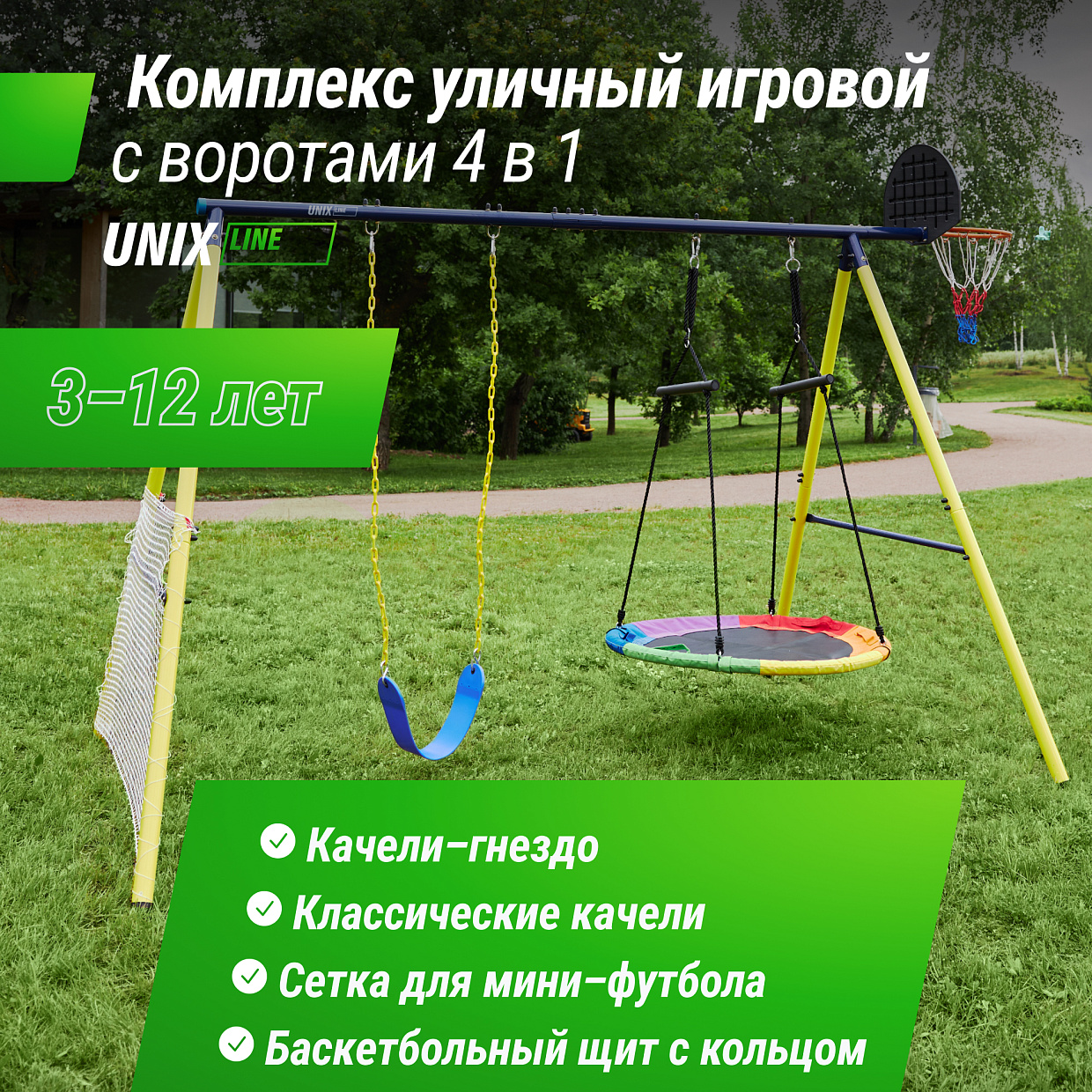 | Комплекс уличный игровой с воротами UNIX Line 4 в 1 Yellow |