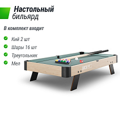 | Аксессуары в комплекте | кий 60 см - 2 шт., комплект шаров Ø30 мм - 16 шт., треугольник, мел |