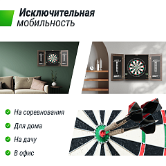Кабинет для дартса выполнен из качественного дерева и отличается стильным дизайном, который прекрасно впишется в любой интерьер. Он не только защищает мишень от повреждений, но и служит элегантным элементом декора вашего дома или игрового клуба. Открывая двери кабинета, вы погружаетесь в атмосферу настоящего дартс-клуба — все необходимое для игры всегда под рукой!