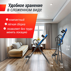 Складная конструкция позволит использовать стол в качестве домашнего инверсионного тренажера, который можно убрать после тренировки и он не займет много места.