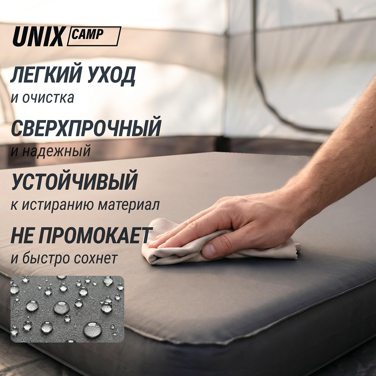 Забудьте о долгой подготовке к отдыху! Просто откройте клапан — и матрас наполнится воздухом за считанные минуты. Никакого насоса, никаких усилий. Благодаря инновационному клапану UNIX при скручивании матраса в процессе сдувания можно сделать паузу, если устали руки, при этом воздух не будет выходить наружу. Подходит для использования как в помещении, так и на природе. Надёжный клапан предотвращает утечку воздуха, а усиленные швы гарантируют долгий срок службы.