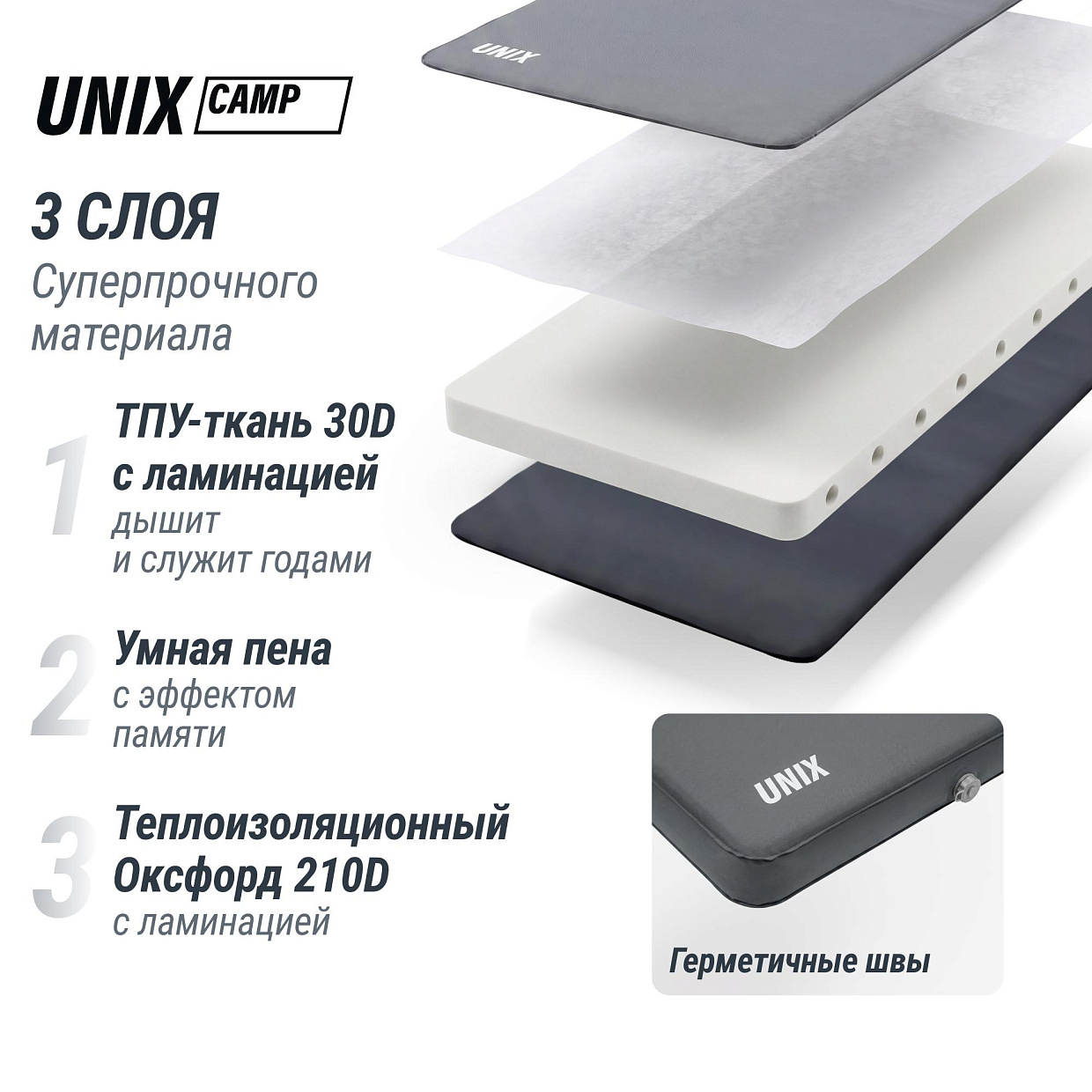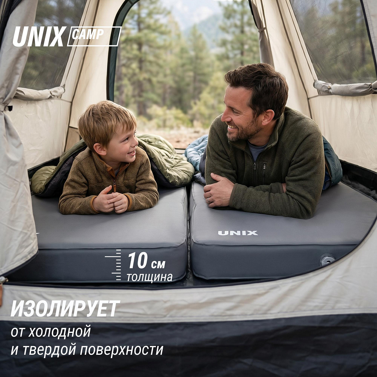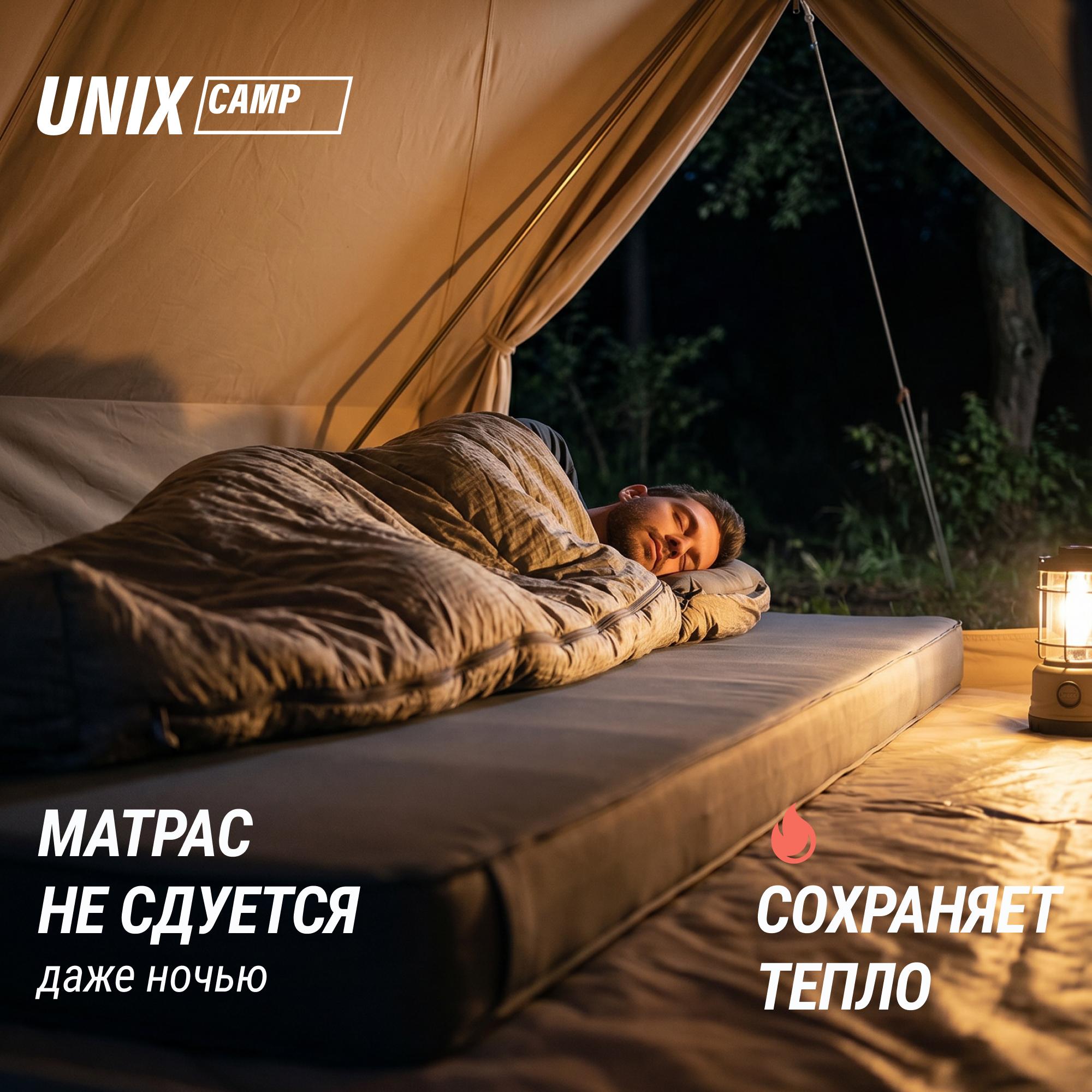 Туристический матрас UNIX Camp 195×80×10 см — одноместное всесезонное спальное место для любых условий: на кемпинге, под открытым небом, в автомобиле или на даче. Допустимая нагрузка — 150 кг.
