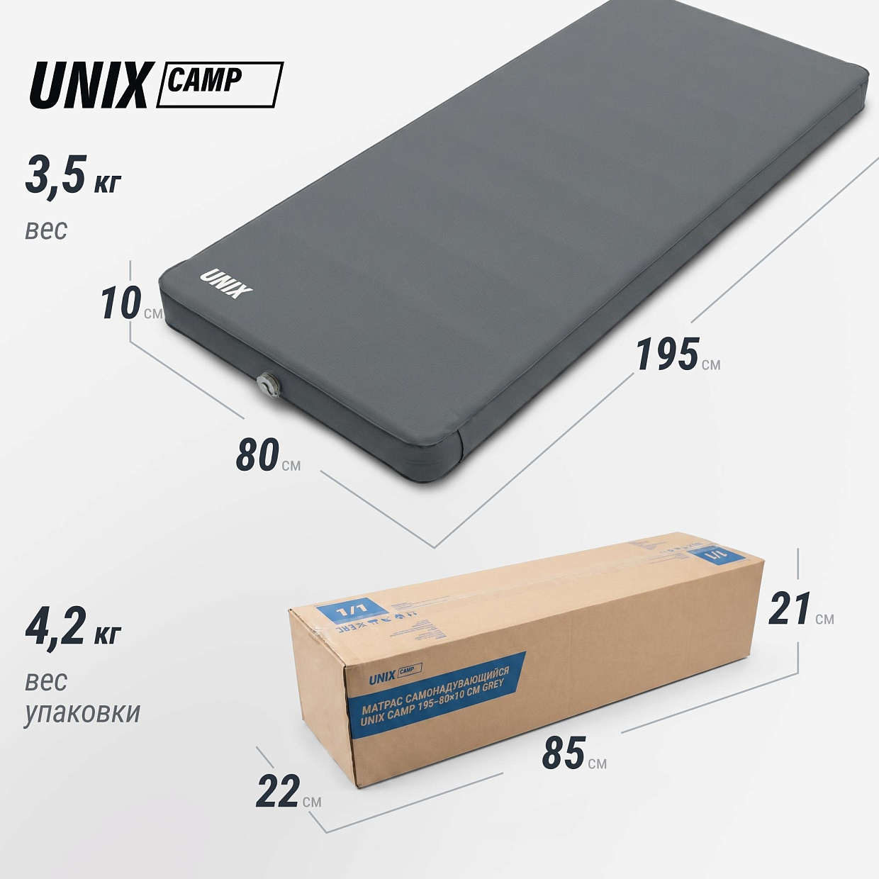 Матрас самонадувающийся UNIX Camp 195х80х10 см серый