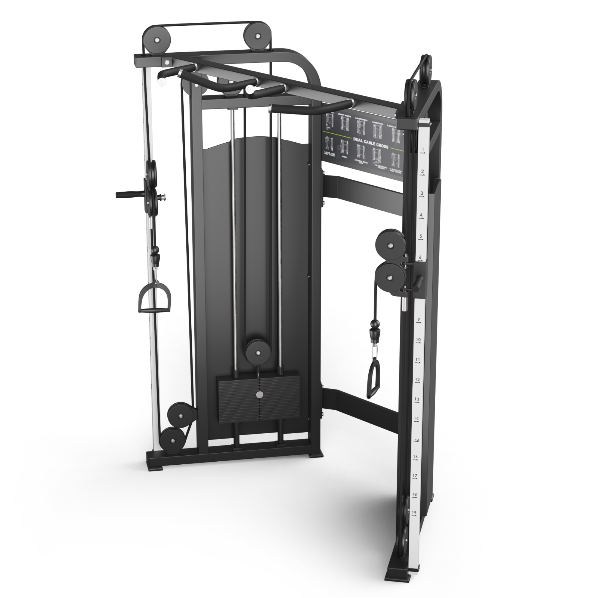 Двойная регулируемая тяга позволяет эффективно прорабатывать мышцы спины, груди, плеч, рук, корпуса и нижней части тела. Возможность независимой настройки блоков делает тренажёр универсальным инструментом для силовых тренировок. Конструкция подходит для пользователей с разным уровнем подготовки. Две колонны со встроенными стеками утяжелителей соединены прочной поперечной балкой. Балка выполняет роль турника для подтягиваний широким и узким хватом. Угловое размещение конструкции экономит пространство и делает спортивный тренажер для ног, ягодиц, рук, спины удобным для установки в любом зале. Простая регулировка веса с помощью штифта-фиксатора. Настройка уровня тяг позволяет быстро адаптировать тренажёр под рост пользователя и конкретное упражнение.