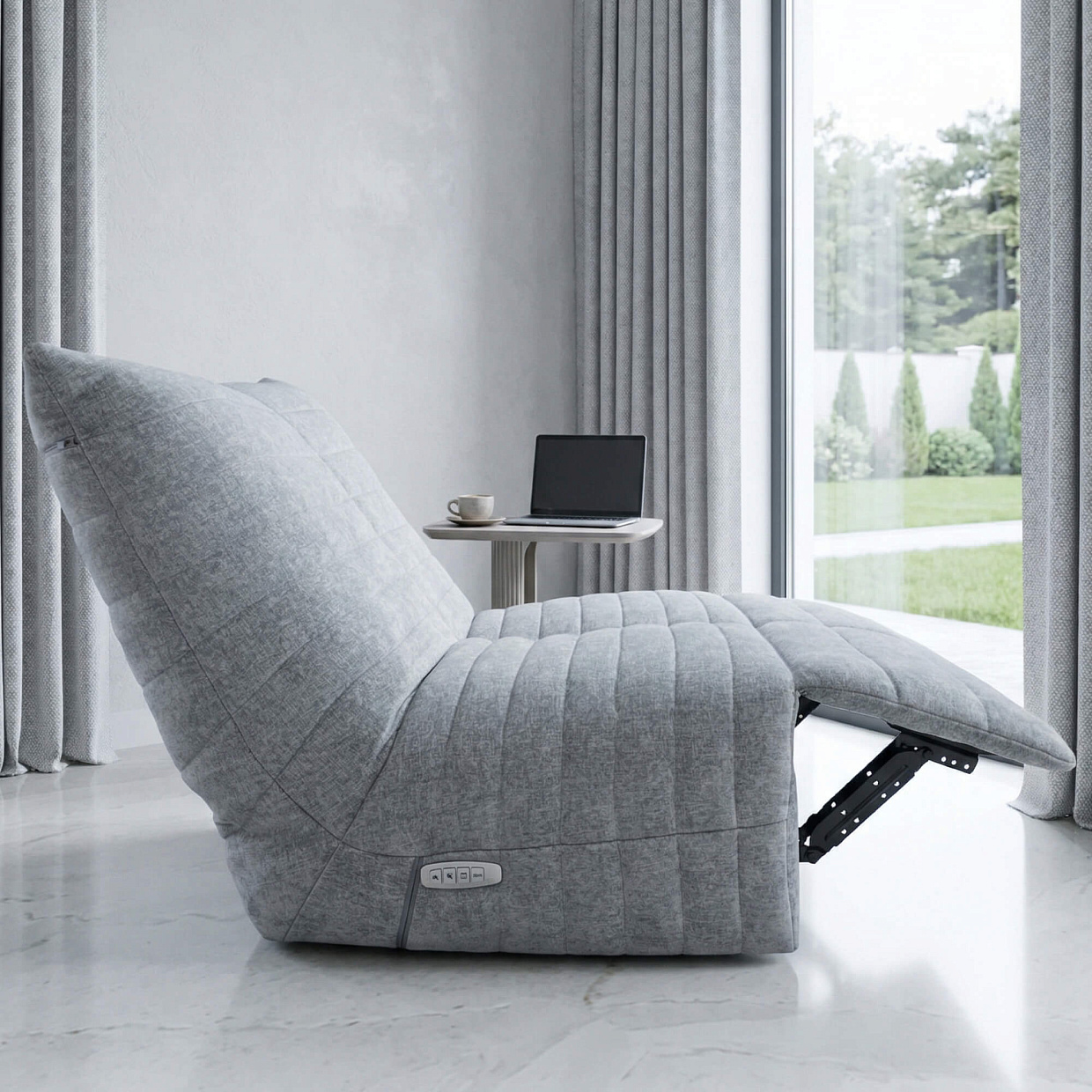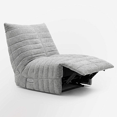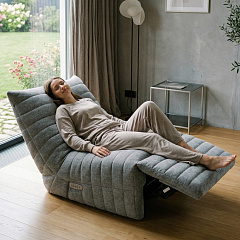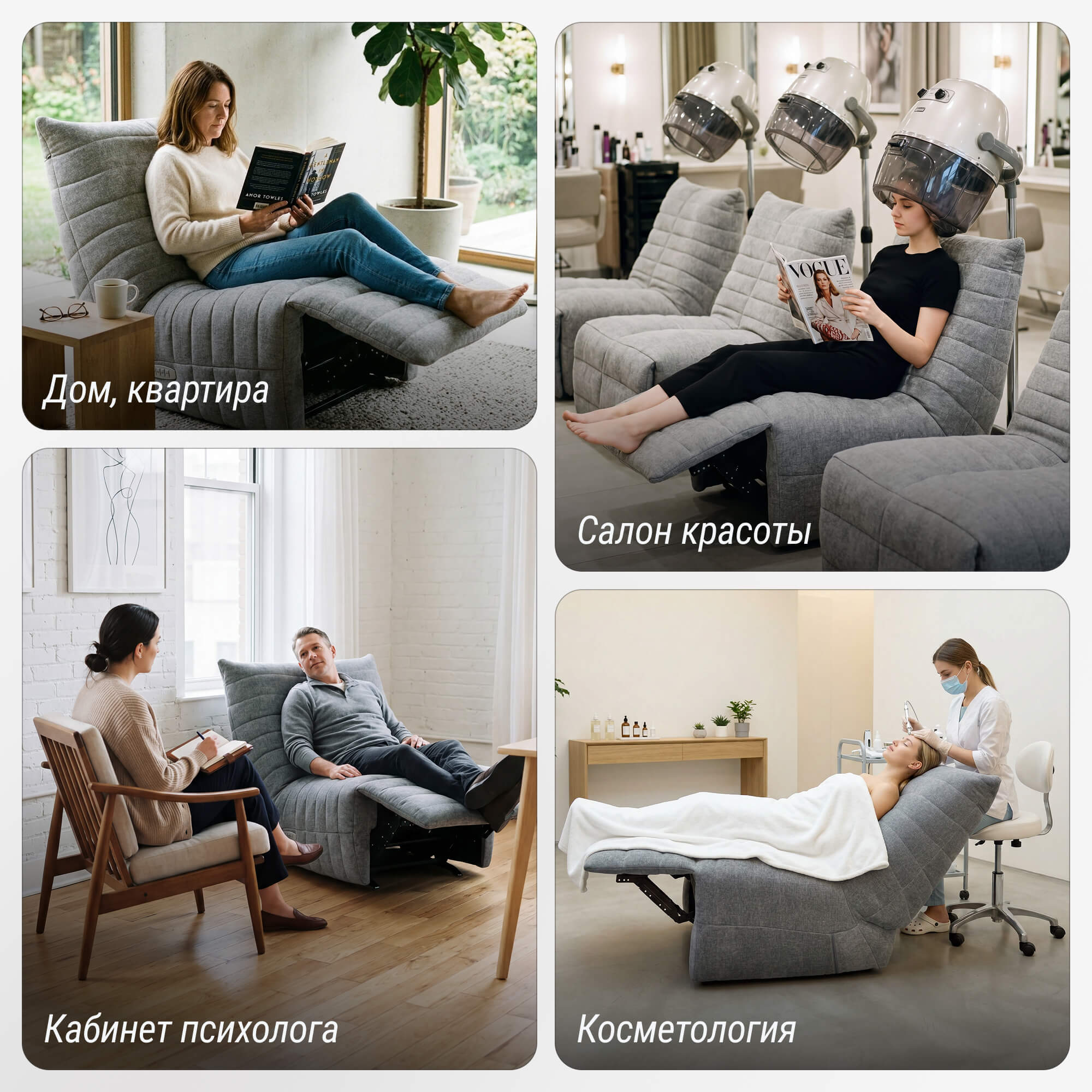 Удобное кресло с подножкой предлагает плавную регулировку угла наклона спинки с возможностью фиксации в любом промежуточном положении: