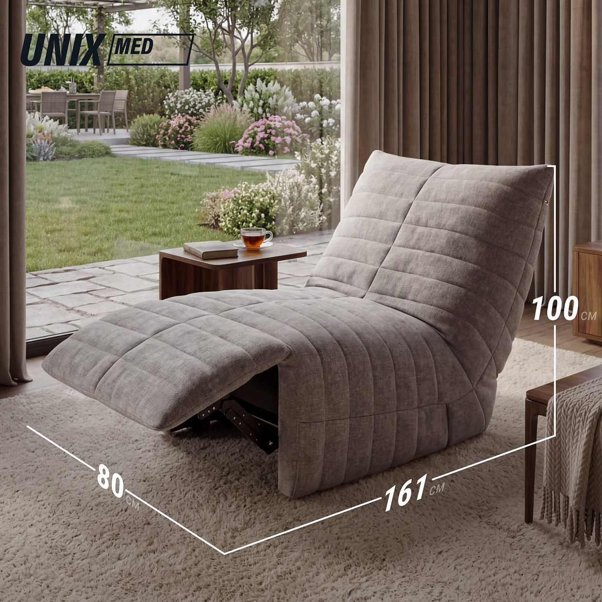 Модель выдержит нагрузку до 150 кг, подходит для пользователей с ростом до 190 см. Обивка выполнена из ткани премиального качества, которая отличается высокой износостойкостью, воздухопроницаемостью («дышащий» эффект) и простотой в уходе. Материал надолго сохраняет свой первоначальный внешний вид и тактильную привлекательность. В сложенном виде имеет компактные габариты, что позволяет рационально использовать пространство в помещении. Электрическое массажное кресло кушетка UNIX Med — гармоничное сочетание технологий, безупречного комфорта и стильного дизайна. Это инвестиция в ваше здоровье и качество жизни, которая будет радовать вас и ваших близких долгие годы.