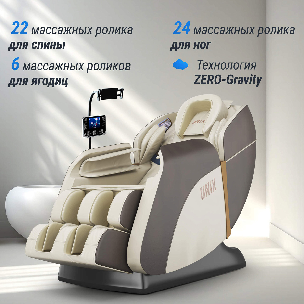 - Встроенные динамики позволят во время массажа слушать любимую музыку через Bluetooth со звуком Hi-Fi. Кресло позволяет синхронизировать вашу любимую музыку с массажным механизмом. Расслабьтесь под свою любимую музыку и получайте удовольствие с массажным креслом UNIX Med. Массажное кресло не только функционально, но и стильно. Элегантный дизайн и качественные материалы позволят ему гармонично вписаться в любой интерьер. А благодаря TFT экрану с удобными настройками и простым управлением вы сможете легко переключаться между режимами массажа, не вставая с кресла.
