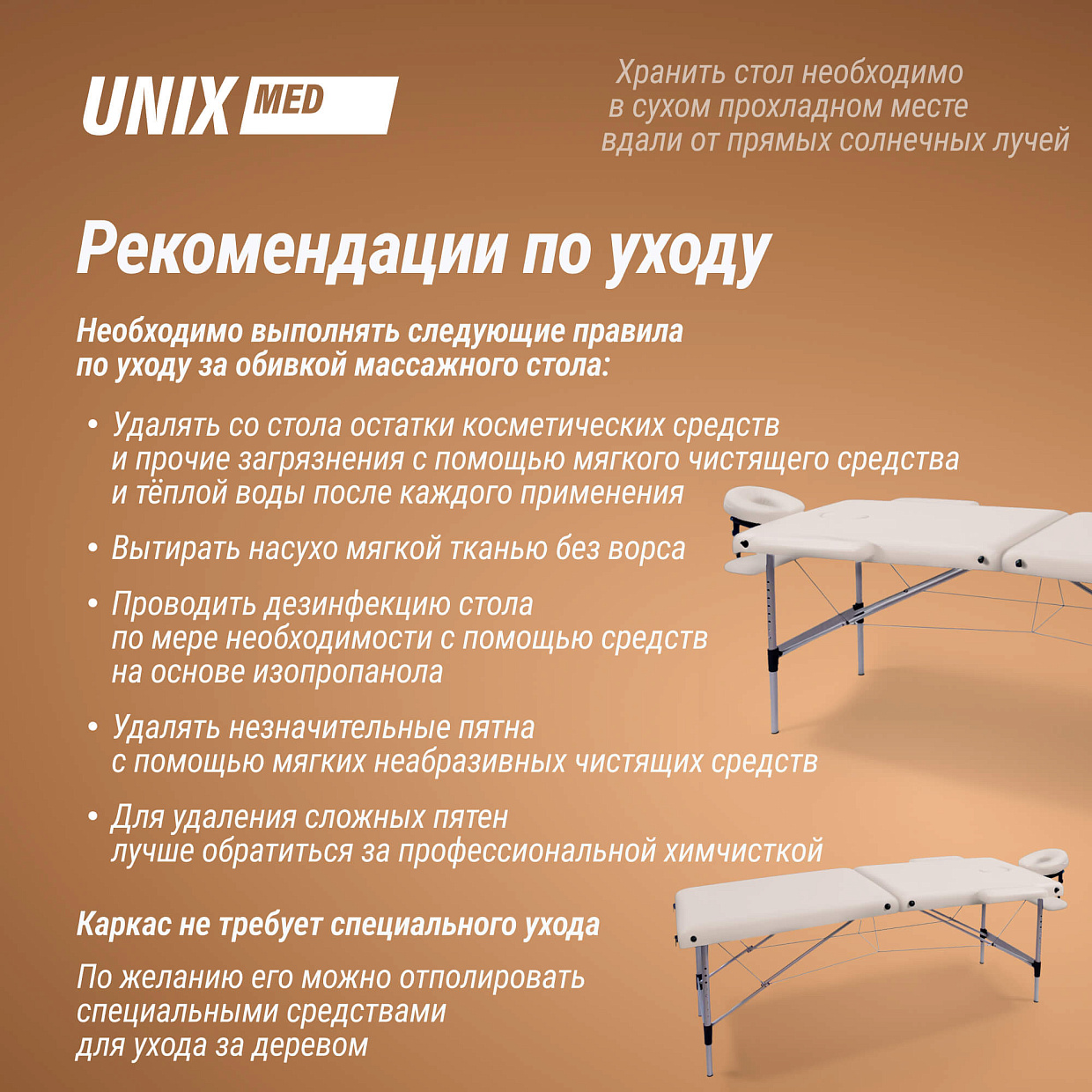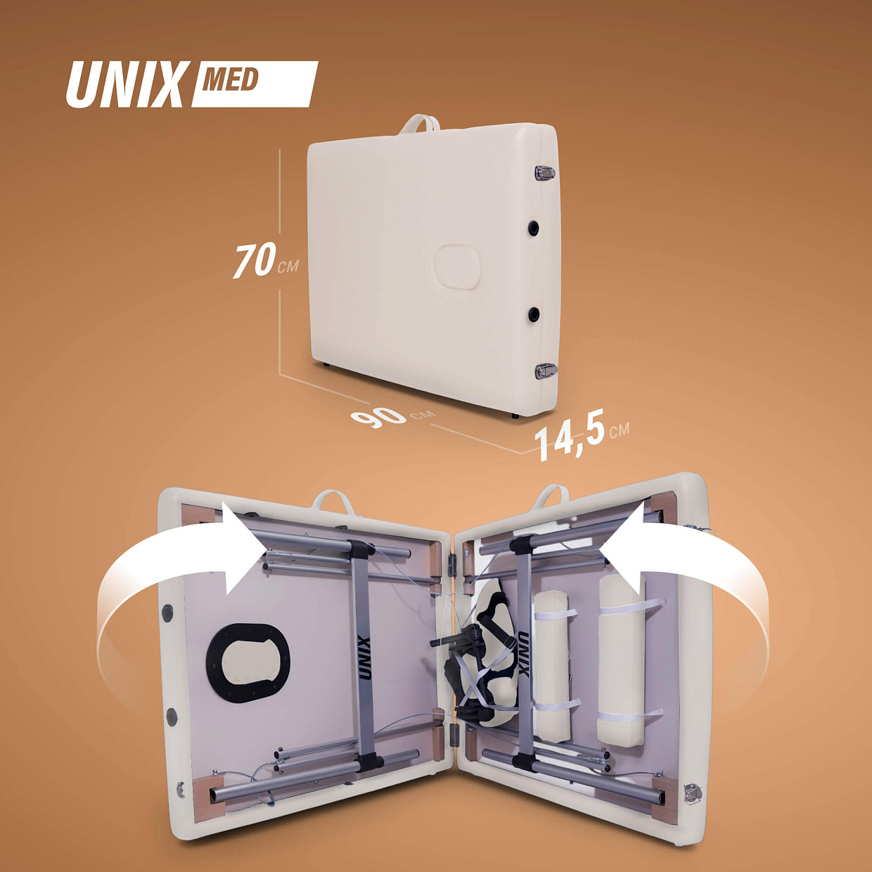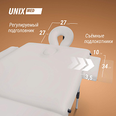 Подголовник обладает возможностью регулировки по высоте и наклону, обеспечивая идеальную поддержку головы и шеи. Складной стол оборудован удобными подлокотниками 34х10х3,5 см, подвесной полкой для гаджетов 37,5х20 см. Универсальность стола делает его незаменимым для профессиональных массажистов, косметологов, мастеров тату и всех, кто работает в сфере оздоровительных услуг. Благодаря высокому качеству используемых материалов и тщательной разработке каждой детали, складной массажный стол UNIX Master 2 Section будет востребован в салонах красоты, SPA, массажных кабинетах. Он сочетает в себе эстетику, функциональность и долговечность, обеспечивая высокий уровень комфорта как для специалиста, так и для клиента.
