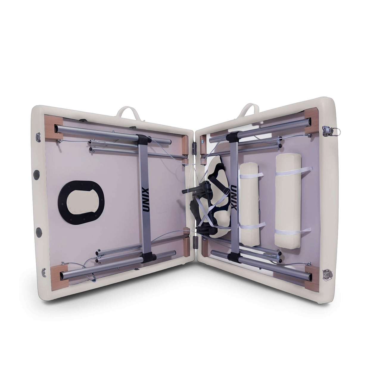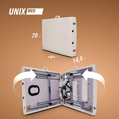 Массажный стол UNIX Master 2 Section разработан специально для профессионалов и любителей массажа, он предоставляет широкий спектр возможностей для проведения оздоровительных и бьюти процедур. Благодаря своей конструкции, кушетка для массажа легко трансформируется в компактный чемоданчик, который удобно брать с собой. Это идеальный выбор для тех, кто ценит мобильность и хочет иметь возможность проводить сеансы массажа вне салона. Этот складной стол - воплощение гармонии природы и современных технологий. Продуманная конструкция модели обеспечит максимальный комфорт клиенту во время массажа спины, шеи и ног. В спинке есть удобное анатомическое отверстие для лица.