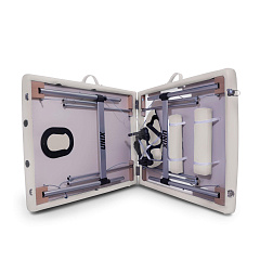 Конструкция кушетки специально разработана таким образом, чтобы ее было удобно складывать и транспортировать. В сложенном состоянии стол превращается в компактный чемоданчик размерами 90х70х14,5 см, который легко переносить благодаря входящей в комплект сумке. Эта особенность делает стол особенно удобным для проведения выездных сеансов вне массажного кабинета. Стол удобно переносить, перевозить, в комплекте имеется сумка для хранения в сложенном виде. Сумка защитит стол и аксессуары от царапин и повреждений во время транспортировки.