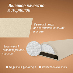 Экокожа, используемая для обивки, обладает высокой прочностью и устойчивостью к различным видам загрязнений. Она обеспечивает долговечность изделия, а также защиту от влаги, что особенно важно в условиях профессионального использования. В отличие от натуральной кожи, эко-кожа не требует сложного ухода и сохраняет свой первоначальный вид даже при интенсивной эксплуатации. Внутри валика для массажного кабинета находится эластичный поролон, который придает ему необходимую упругость и комфорт. Поролон равномерно распределяет нагрузку, поддерживая различные части тела — шею, спину, поясницу или ноги. Благодаря этому материалу, валик прекрасно адаптируется под индивидуальные анатомические особенности каждого клиента, создавая ощущение максимального удобства и релаксации во время процедур.