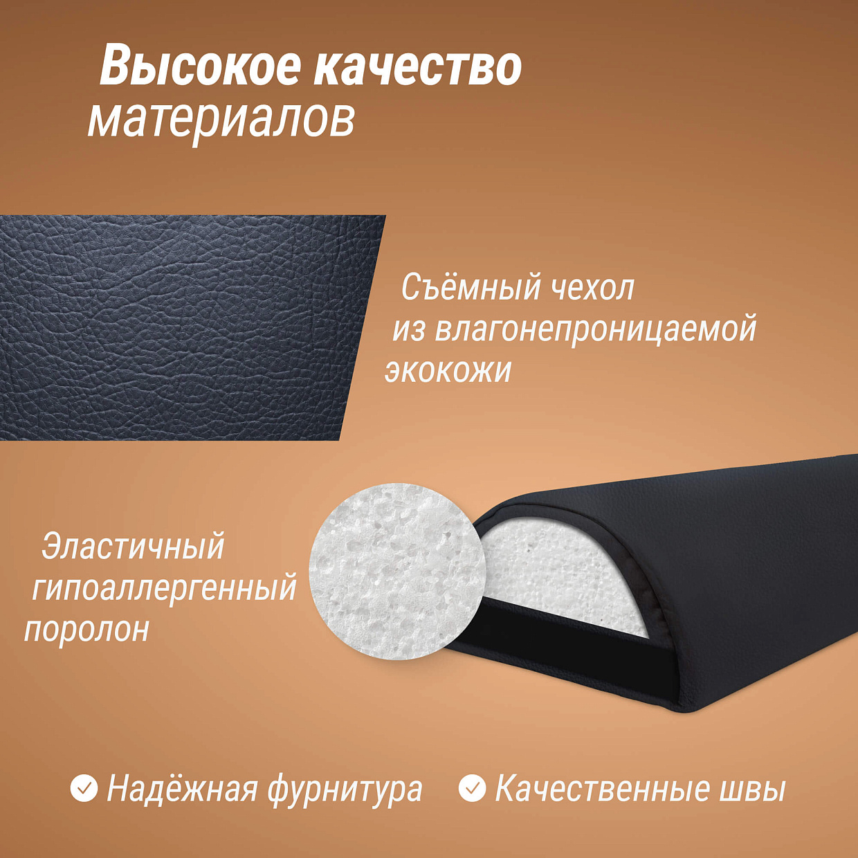 Экокожа, используемая для обивки, обладает высокой прочностью и устойчивостью к различным видам загрязнений. Она обеспечивает долговечность изделия, а также защиту от влаги, что особенно важно в условиях профессионального использования. В отличие от натуральной кожи, эко-кожа не требует сложного ухода и сохраняет свой первоначальный вид даже при интенсивной эксплуатации. Внутри валика для массажного кабинета находится эластичный поролон, который придает ему необходимую упругость и комфорт. Поролон равномерно распределяет нагрузку, поддерживая различные части тела — шею, спину, поясницу или ноги. Благодаря этому материалу, валик прекрасно адаптируется под индивидуальные анатомические особенности каждого клиента, создавая ощущение максимального удобства и релаксации во время процедур.