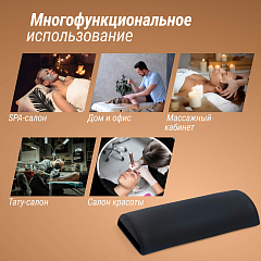 Одним из ключевых преимуществ данного полувалика является наличие съемного чехла. Это решение значительно упрощает уход за изделием: чехол можно легко снять и почистить, что помогает поддерживать высокий уровень гигиены. Такая функция особенно важна в условиях массажного кабинета, салона красоты, где чистота и безопасность клиентов стоят на первом месте. Для облегчения переноски валик оснащен широкой удобной ручкой, интегрированной непосредственно в его конструкцию. Эта деталь делает транспортировку простой и комфортной, позволяя перемещать данный аксессуар без особых усилий. Вес изделия составляет всего 300 грамм.