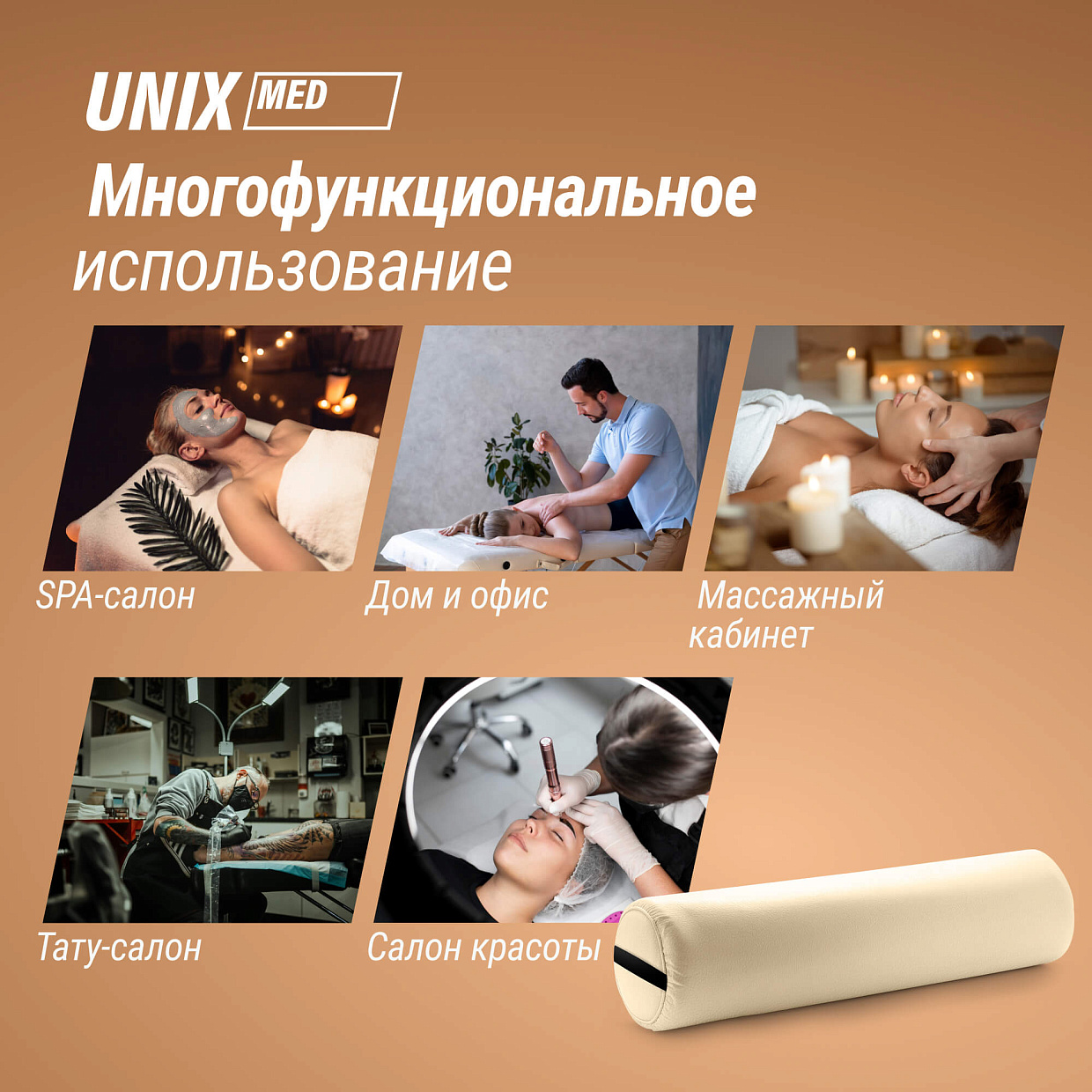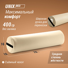 Валик для массажного стола UNIX размером 70x16x16 см предназначен для использования как в профессиональных массажных кабинетах, салонах, так и в домашних условиях.