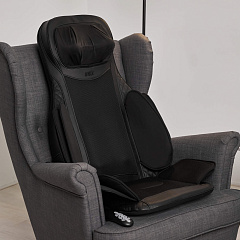 | Особенности | адаптация роликов под рост пользователя, вибрационный массаж встроенный в сиденье, воздушно-компрессионный массаж ягодиц, индикатор режима работы, проводной пульт ДУ, карман для хранения - длина провода 77 см / с пультом 92 см, съемный чехол в области шеи |