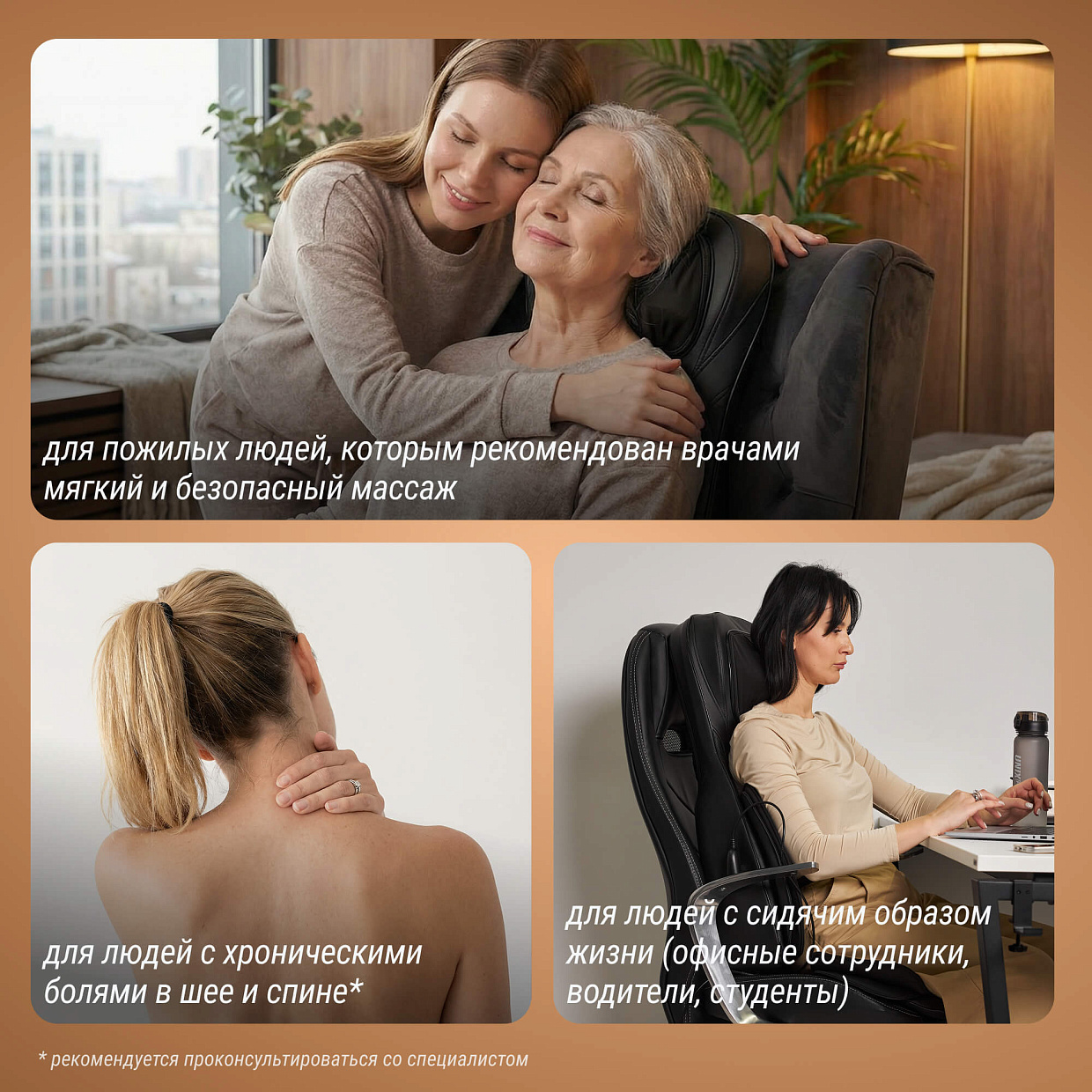 | Зоны массажа | шея / поясница / спина / ягодицы / бедра |