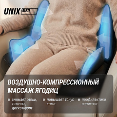Особое внимание в электро массажере уделено применению воздушно-компрессионного массажа в области ягодиц для уменьшения объёмов в области бёдер и улучшения формы ягодиц без лишних усилий. Воздушно-компрессионный массаж ягодиц — эффективная технология, которая мягко и безопасно воздействует на проблемные участки, помогая добиться подтянутого силуэта. Воздушно-компрессионный массаж ягодиц помогает от отёков и онемения, снимает ощущение тяжести, усталости и дискомфорта в ногах и ягодицах. Воздушно-компрессионный массаж подходит для регулярного применения дома, не вызывает болезненных ощущений и идеально сочетается с другими уходовыми процедурами. Дополнительные виброподушки мягко стимулируют ягодицы, поддерживая тонус и способствуя общему релаксу организма. Предусмотрено 3 варианта интенсивности: низкая, средняя, высокая.