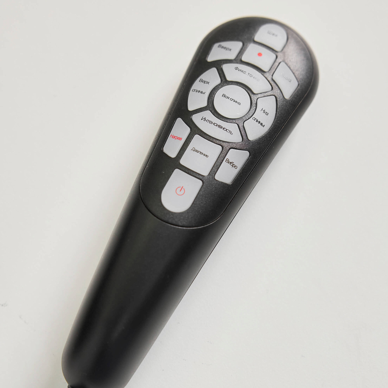 Управление массажером для шеи и спины осуществляется с помощью удобного проводного 77 см пульта дистанционного управления, расположенного в специальном кармашке. Настройка нужного режима производится легко и быстро из широкого спектра вариантов: разминающий массаж шеи, полный массаж спины, массаж верхней и нижней части спины, точечный массаж проблемных зон.