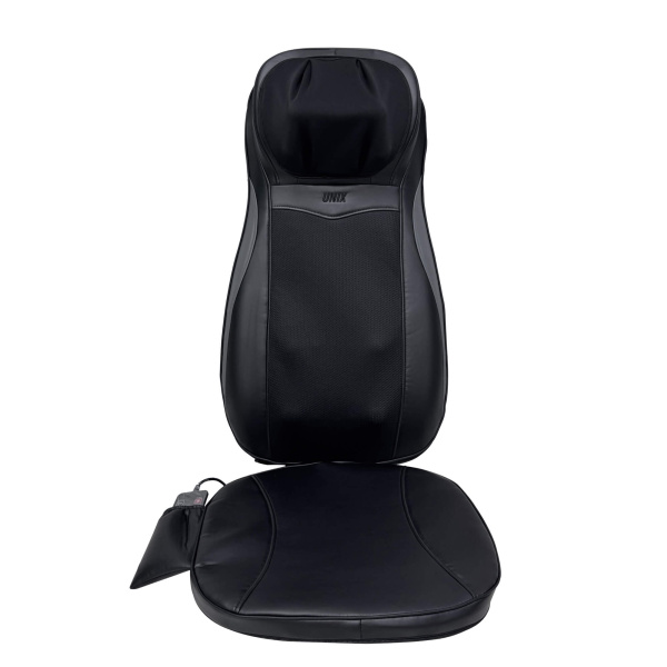 Unix Flex Relax Black оснащена 12-ю встроенными массажными роликами: 4 ролика воздействуют на область шеи, улучшая кровообращение и снимая напряжение, 8 вращающихся роликов разного размера массируют спину и поясницу, глубоко проходя по мышцам и устраняя усталость. Смена направления вращения роликов идеальна для более равномерного массажа. Дополнительные виброподушки мягко стимулируют ягодицы, поддерживая тонус и способствуя общему релаксу организма. Предусмотрено 3 варианта интенсивности: низкая, средняя, высокая.