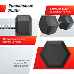 Созданная с использованием высококачественных материалов, обрезиненная гексагональная гантеля обеспечивает надежность и долговечность. Уникальная эргономическая форма металлической ручки способствует удобному удержанию во время тренировки, а специальное обрезиненное покрытие предотвращает скольжение и обеспечивает надежный захват.