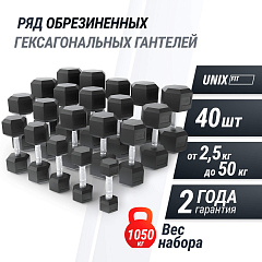 | Ряд гантелей гексагональных UNIX Fit обрезиненные от 2,5 до 50 кг |
